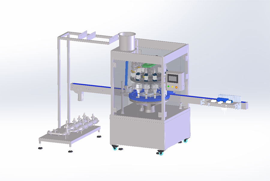 產品描述設備如下圖1: 此產線配置產品有(從前端到后端):回轉式高速上閥機組、離心式高速理閥機、供閥提升機、6工位高精度計量缸&單組增壓泵、6頭封口&6頭充氣一體機(正壓防爆電箱和防爆人機界面)。具有操作簡單,人機交互友好,故障指示等優點。便于排查和排除故障。2.各機組完成的生產工藝和性能參數:A.回轉式高速上閥機組如圖2所示 圖2 型號:SG-QGQW25-150HSF回轉式高速上閥機,16工位回轉式高速上閥機汲取國外先進設備技術研發而成,機組由閥門提升機,轉盤式離心理閥機(此設備根據閥門形式非標定制)和高速回轉上閥機構成。工作原理為一個送閥軌道...